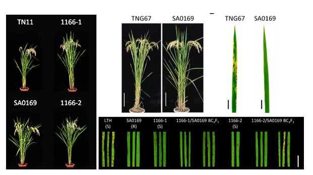 Developing of double resistant rice varieties using SA0169, a strong and durable rice blast disease resistant line as the donor line, and 1166-1 and 1166-2 as recurrent parents to breed new varieties resistant to both bacterial blight and blast diseases. New varieties will be released in 2021.