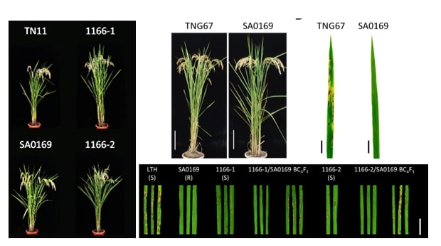 雙重抗病性水稻品系之開發:以SA0169為稻熱病抗性之供給親,以1166-1與1166-2為輪迴親,育成白葉枯病與稻熱病雙重抗性品種,即將於2021年推出。